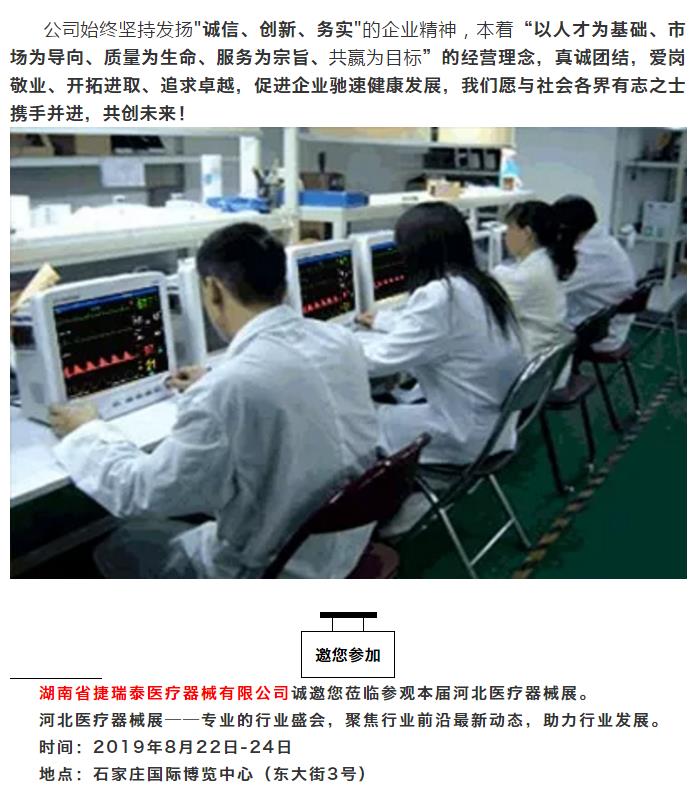 國(guó)內(nèi)領(lǐng)先監(jiān)護(hù)儀制造商——湖南省捷瑞泰醫(yī)療器械有限公司邀您齊聚河北秋季醫(yī)博會(huì)