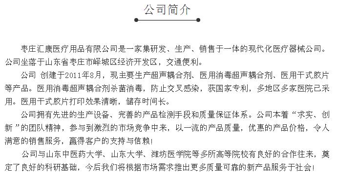 醫(yī)用消毒超聲耦合劑專業(yè)生產(chǎn)廠家—棗莊匯康醫(yī)療用品有限公司