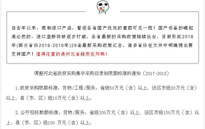 重要通知!河北省采購政策出爐!明確支持國產(chǎn),嚴(yán)格限制進(jìn)口!200萬以下不用公開招標(biāo)...